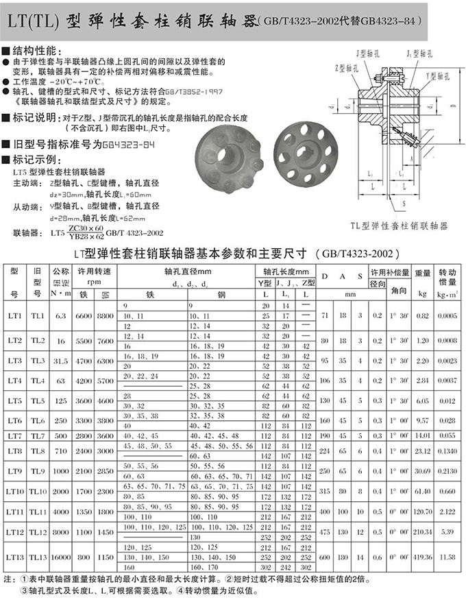 瑞安市寶德隆機(jī)械配件有限公司提供LT(TL)型彈性套柱銷聯(lián)軸器具有拆裝方便,快速安裝等特點(diǎn),廣泛用于連接/固定輪轂孔和零件的軸,例如齒輪,錐齒輪,鏈輪,葉輪,凸輪,皮帶輪和飛輪等軸的聯(lián)結(jié)固定,咨詢電話:18906872378
